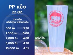 - ประเภทสินค้า: แก้วพลาสติก PP (ไม่รวมฝา)
