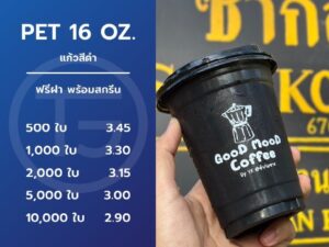 แก้วพลาสติก PET 16 ออนซ์ สีดำ ทรงสตาร์บัค ปากแก้ว 98 มิล