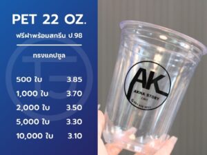 แก้วพลาสติก PET 22 ออนซ์ ทรงแคปซูล ปาก 98 มิล