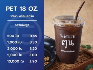 แก้วพลาสติก PET 18 ออนซ์ ทรงแคปซูล ปากแก้ว 98 มิล