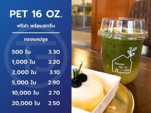 แก้วพลาสติก PET 16 ออนซ์ ใส ทรงแคปซูล ปาก 98 มิล
